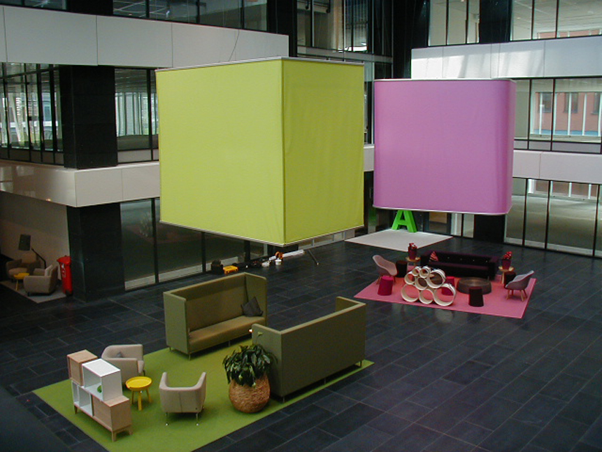 In this project a large vide was transformed into a meeting area for visitors and employees.