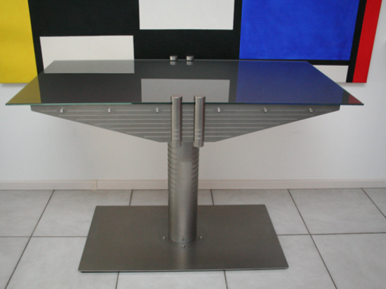 Entirely museum-wise assembled, made entirely from inert materials such as stainless steel and tempered glass.