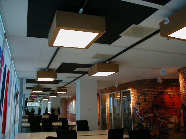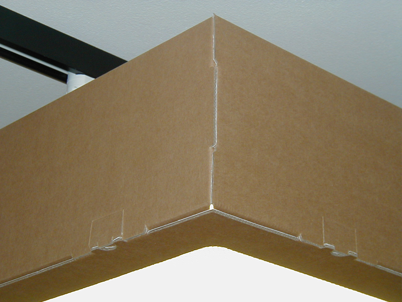 De behuizing van het armatuur is van brandvertragend karton, aan de binnenzijde voorzien van een witte backing.