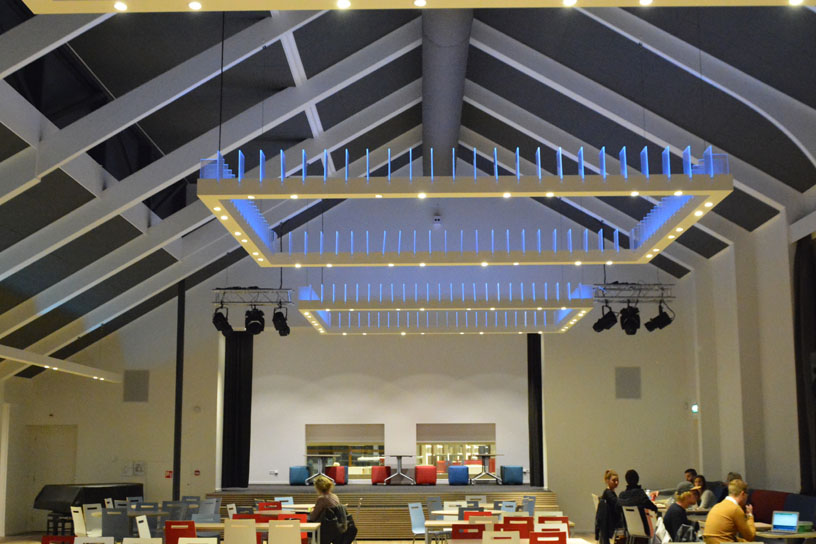 Luminaires equipped with up and down lights, the entire luminaire is Dali controlled.
