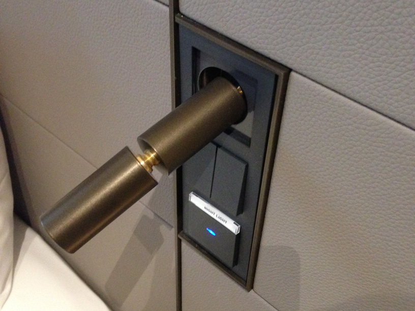The reading light is mounted on a triple built-in housing that is also suitable for the additional switching material.