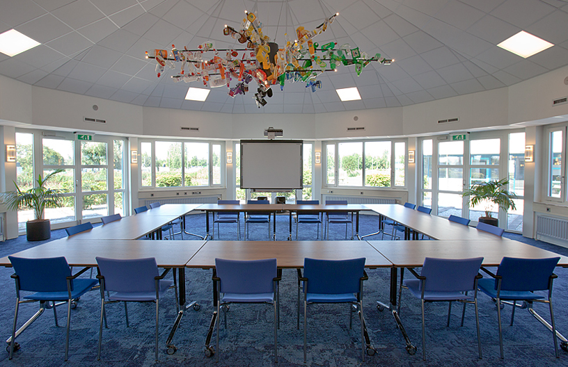 De bedrijfsactiviteit, het duurzaam inzamelen van huishoudelijk afval, komt tot uitdrukking in deze lichtspecial in het auditorium.
