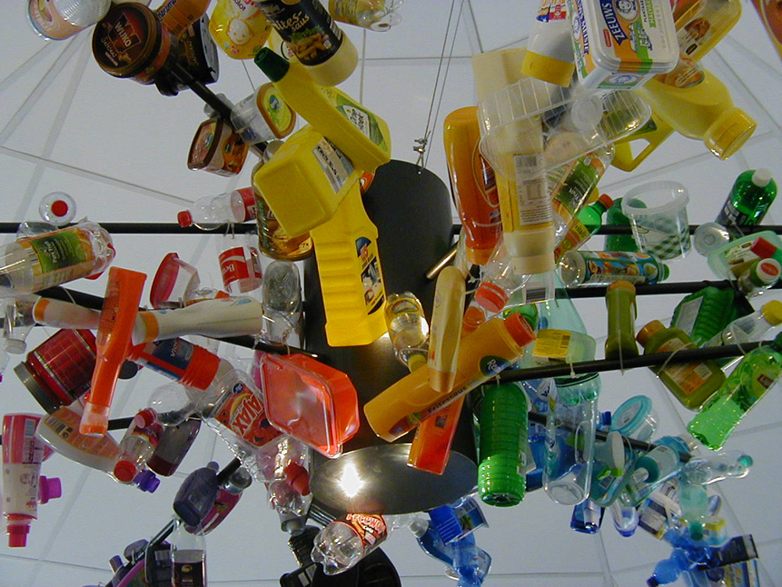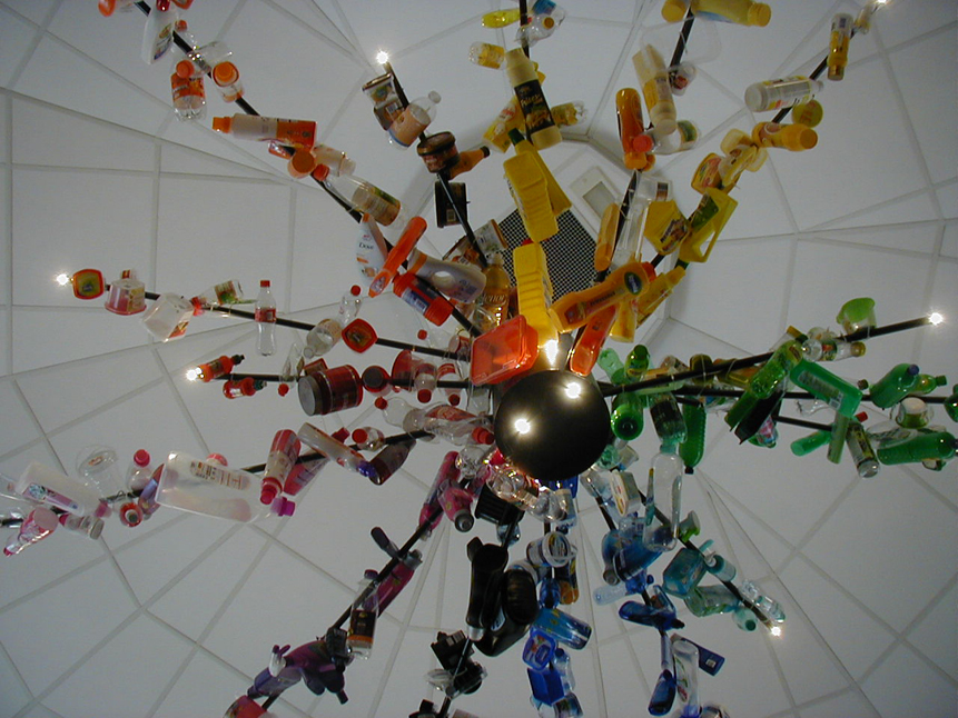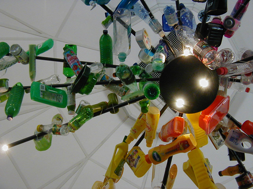 De armen van het armatuur zijn gedecoreerd met verpakkingen uit het reguliere inzameltraject. Deze zijn gegroepeerd volgens het kleurenspectrum.