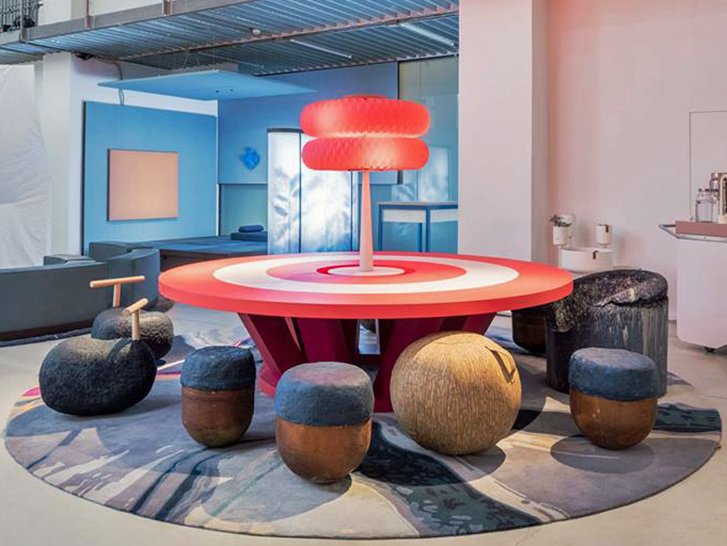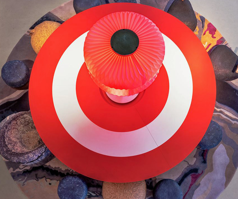 Het tafelarmatuur is opgebouwd uit twee gevouwen kappen met ingebouwde RGB verlichting.