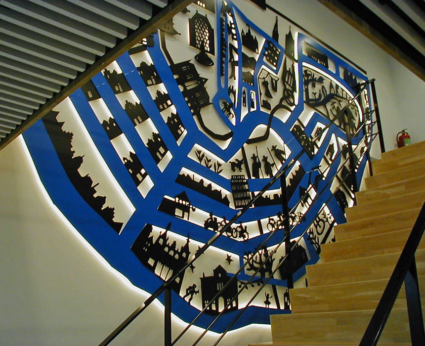 Reproductie van een reeds bestaand kunstwerk in een kantooromgeving.
