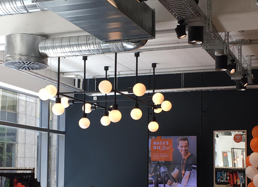 Decoratieve shopverlichting voorzien van LED lichtbronnen.